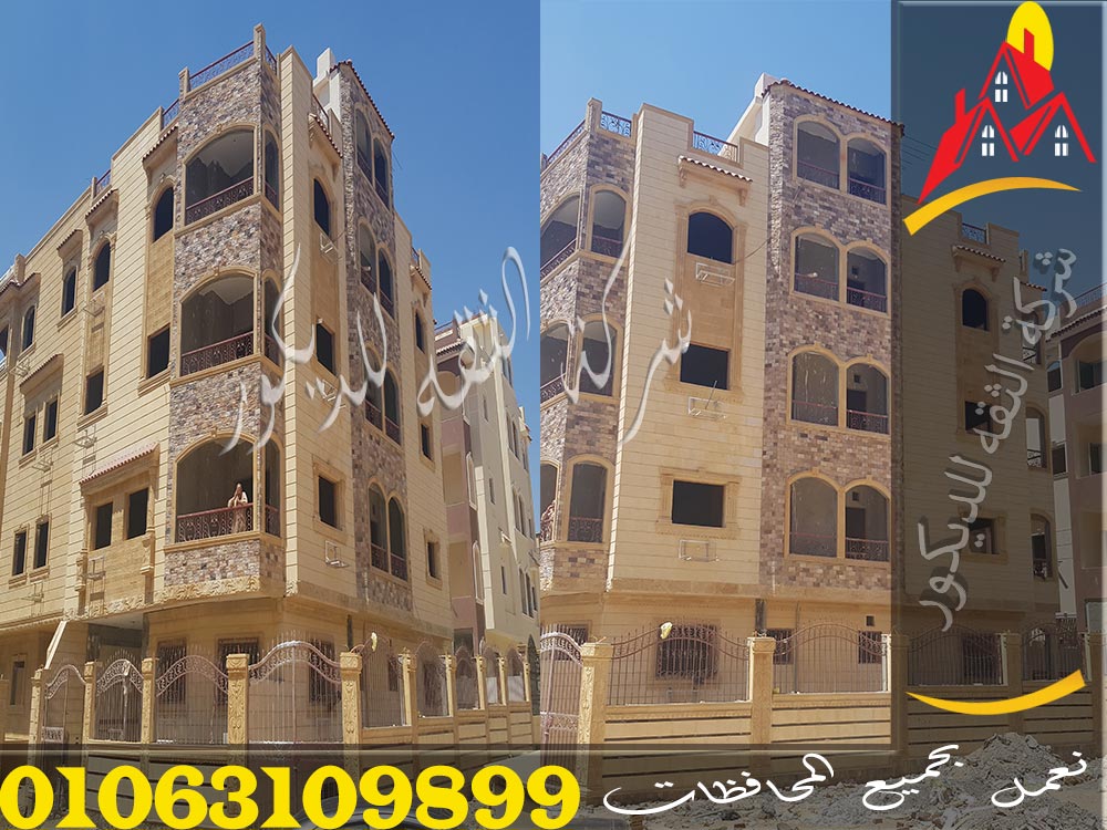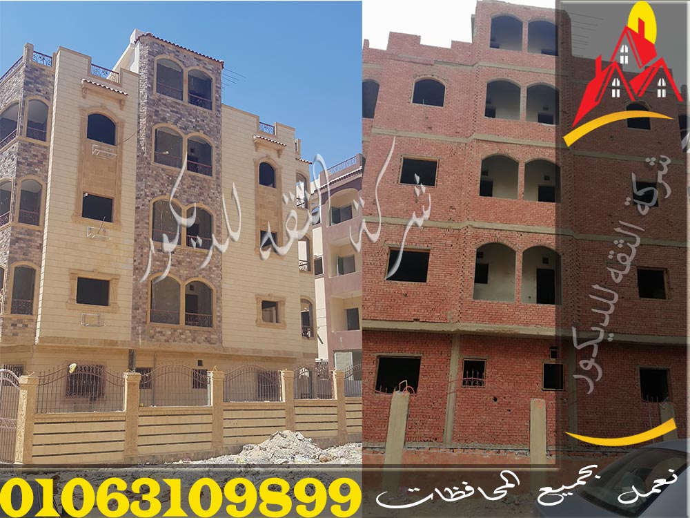 واجهة منزل قبل وبعد التشطيب بالحجر الهاشمي الكريمي